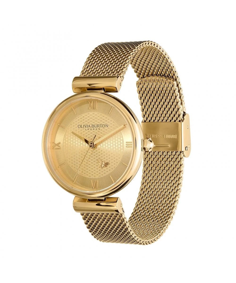 Olivia Burton Minima Bee T-Bar Gold Mesh Bracelet Watch